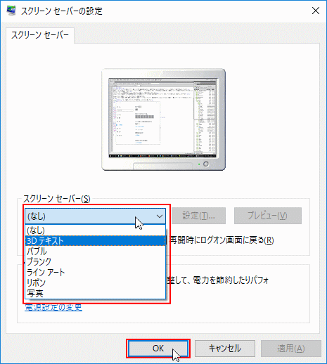スクリーンセーバーのプレビューとカスタマイズ