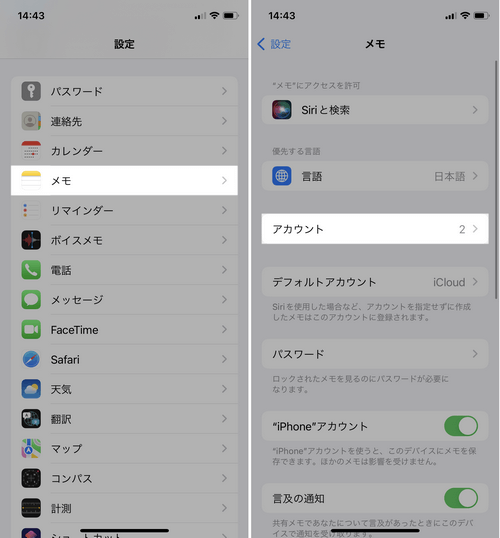 iPhoneのメモアプリでアカウントが表示されない場合の対処法