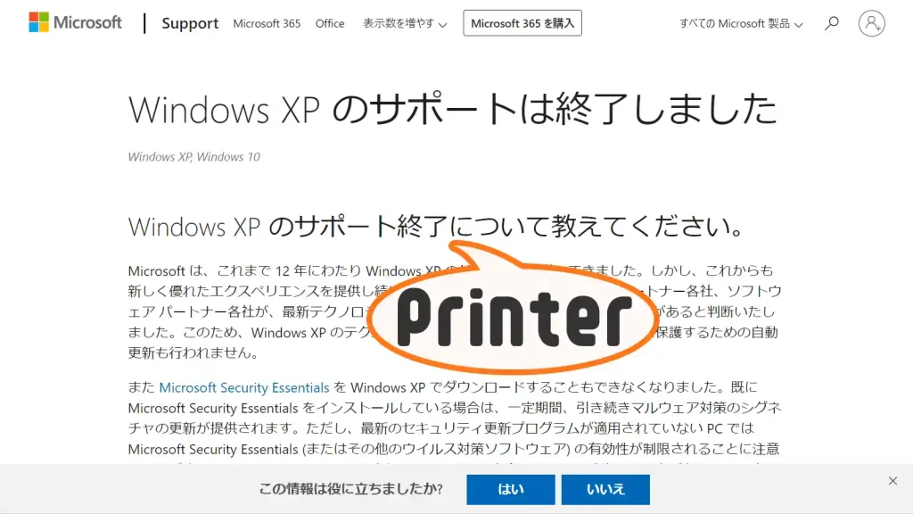 Windows XPがサポート終了した後、プリンターのドライバーはどうなりますか?
