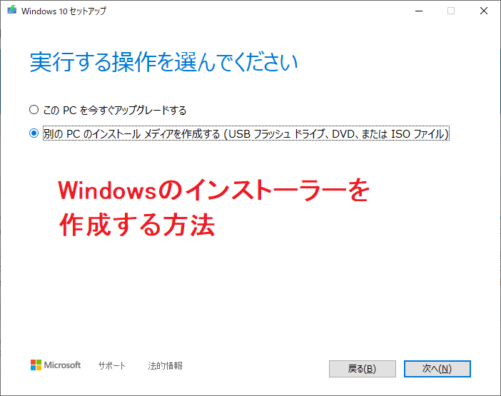 USBメモリを使用してWindows10インストールディスクを作成する方法を教えてください。