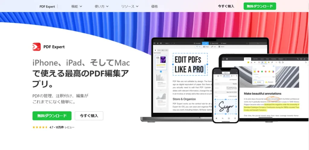 PDF Expert for Windowsは、PDFの編集閲覧注釈付けが可能な高機能ソフトウェアです。このツールを使用することで、ユーザーはPDF文書に対して様々な操作を行うことができます。例えば、テキスト編集機能を利用して、既存のPDF内のテキストを直接編集したり、新しいテキストを追加することができます。また、画像の挿入削除も可能で、PDF内のコンテンツを柔軟に変更できます。