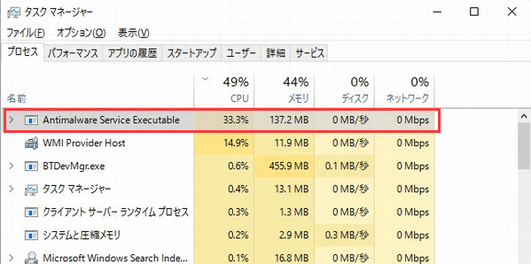 Windows10でCPU使用率が高い原因はAntimalware Service Executableだけですか?